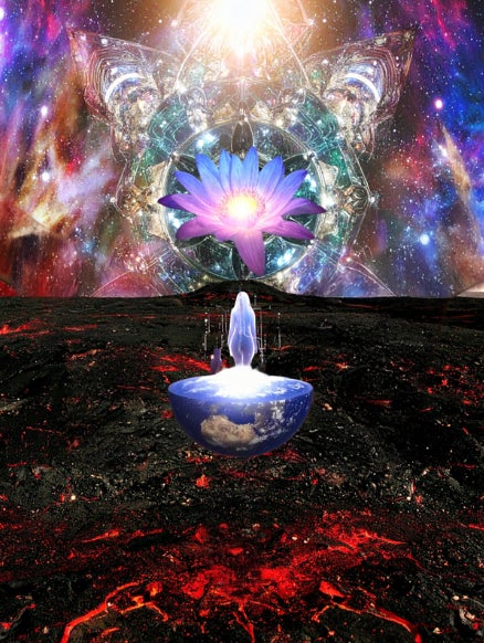 ひび割れた大地は過去、そこに咲く一輪の花は未来への希望。