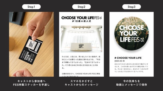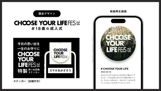 思い出召喚ステッカー「yomiyomi」が「CHOOSE YOUR LIFE FES ’25 #18歳の成人式」で配布決定! 18歳の自分から未来の自分へ–「今日の思い出を、一生のお守りに」