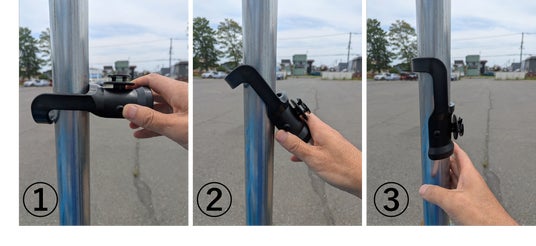 電気さくでは多くの場合、細く柔軟な支柱を用います。しかし対クマ用電気さくには、より太く丈夫な単管(直径48.6mmの鋼管)を使用したいという声も多く寄せられていました。 そこでこの度、工具無しで単管に取り付け可能な新製品「単管碍子」を発売いたしました。 ・ブルーキングワイヤーと強度の高い支柱、そして単管碍子を組み合わせることで、クマの突進等による衝撃に負けない強度の高い電気さくが完成します。 【取り付け手順】 単管碍子 施工例 取り付けは工具いらずでカンタン施工! 規格・特性 ブルーキングワイヤー 単管碍子