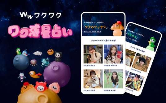 株式会社ワクワクコミュニケーションズ(本社:東京都港区、代表取締役社長:大林 正広)はマッチングサービス「ワクワクメール」にて個性豊かなキャラクターが登場する「ワク惑星占い」に「相性のいいお相手」が表示される新機能をリリースしました。