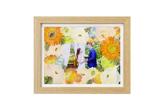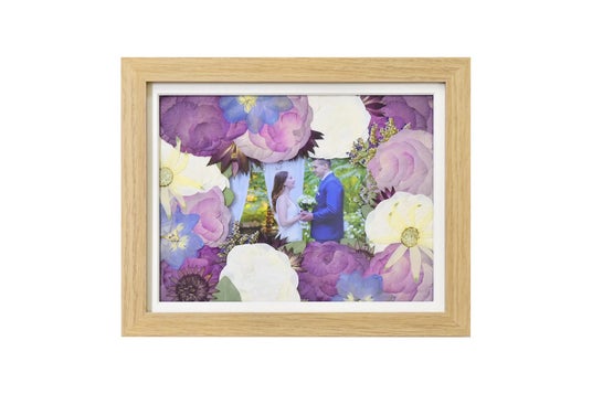 プロポーズや結婚式で使った花束を、押し花アートとして残せます。
