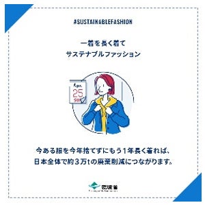 環境省は、日本で消費される衣服と環境負荷に関して実施している調査をもとに、「持続可能なファッション」について提唱しています。その中で、生活者や企業ができるアクションとして、リペアの推奨、適切なケアの提案、セカンドハンド(古着)の利用などが挙げられていますが、リペアについては、「今ある服を捨てずにもう1年長く着れば、日本全体で約3万トンの廃棄削減につながる」というデータが公表されています。