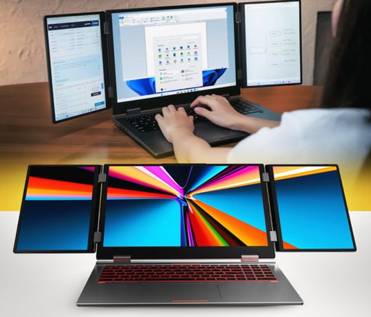 持ち運びにも便利なモニター一体型&折りたたみ式でケーブル不要!究極の3画面ノートPC「Greyshork X3 Laptop」クラファン開始!