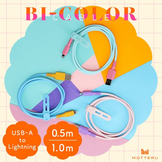 バイカラーがかわいいケーブル ●USB-A to Lightning (MOT-BCECAL) ⇒【セール特価:1,380円(税込)】