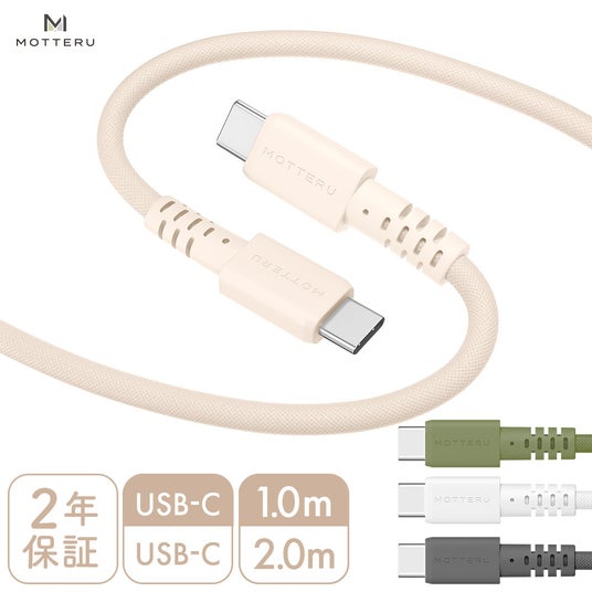 編み込み素材で手なじみの良いケーブル ●USB-A to USB-Cケーブル (MOT-NLAC) ⇒【セール特価:1m:780円(税込) 2m:980円(税込)】 ●USB-C to USB-Cケーブル (MOT-NLCC) ⇒【セール特価:1m:880円(税込) 2m:1,080円(税込)】 編み込み素材を採用した使い勝手の良い