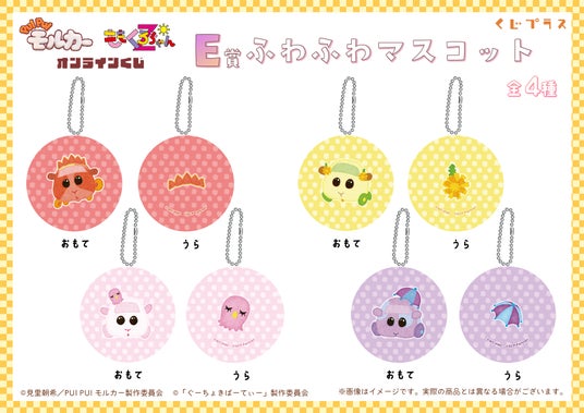 台座: H30×W30×D3mm ・E賞:ふわふわマスコット(全4種)