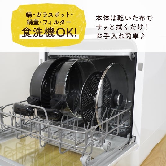 ・セット内容/本体、ガラスポット、フライヤーフィルター、鍋、ガラス蓋、日本語取扱説明書