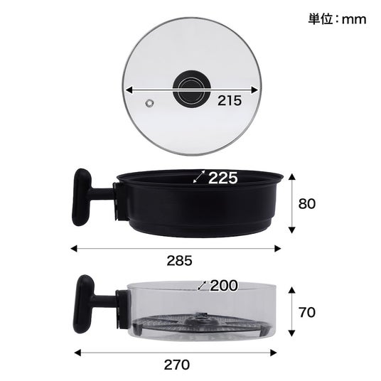 ガラス蓋(持ち手含む):幅215×奥行215×高さ30(mm)