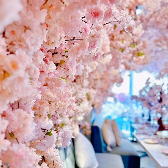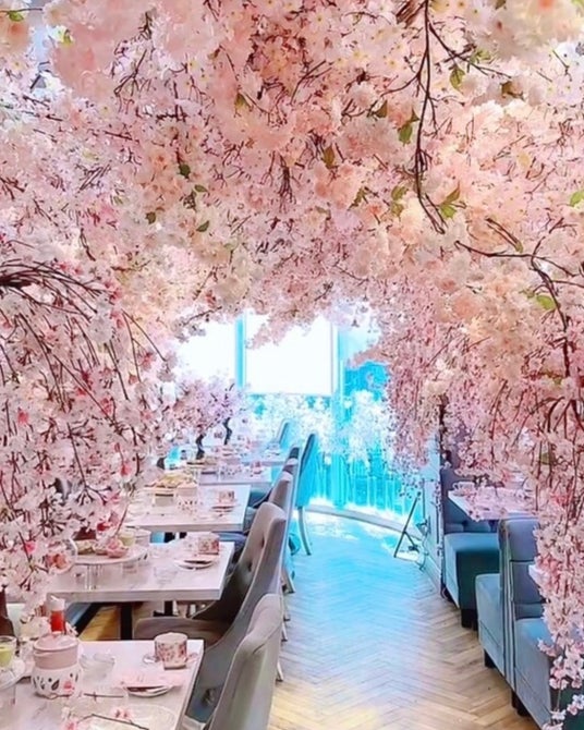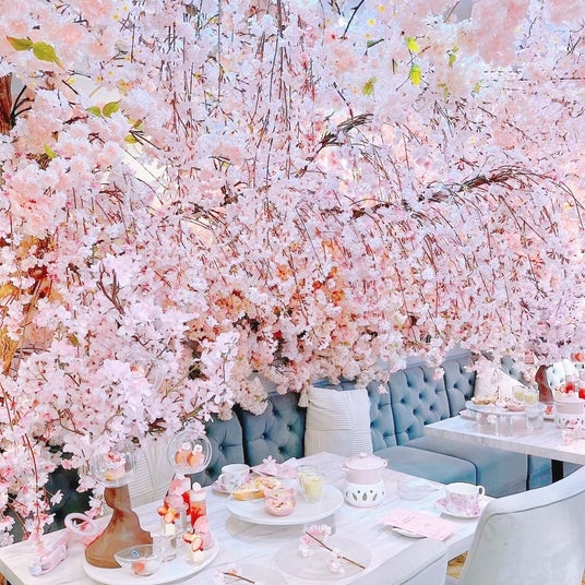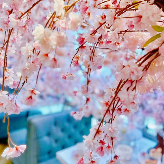 店内は、満開の桜をイメージした装飾で彩られています。華やかな空間はまるで桜の下でお花見をしているかのような気分を味わえ、目でも舌でも春を存分に感じられる繊細なスイーツやセイボリーとともに、優雅なティータイムをお過ごしください。