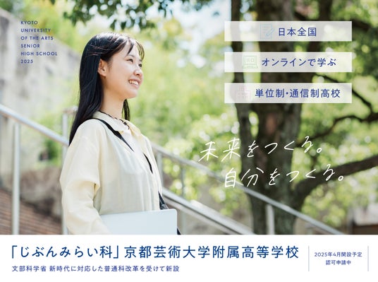 学校法人瓜生山学園 京都芸術大学附属高等学校(京都市左京区/校長 鈴木克治)では、2025年4月に日本全国どこからでもオンラインで学習できる単位制・通信制の「じぶんみらい科」を新設します(認可申請中)。2025年度出願期間は2025年1月15日(水)から開始します。