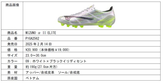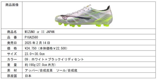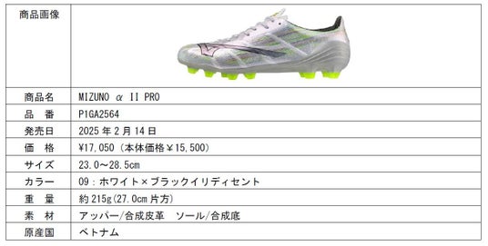 ミズノは、新しいアッパー構造でフィット感と軽量感が進化したフットボールシューズ「MIZUNO α II(ミズノ アルファ ツー)」シリーズを2月14日(金)に全国のミズノ品取扱店で発売します。