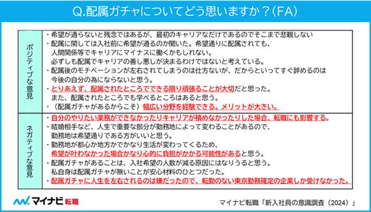 ◆“配属ガチャ”に外れたと感じている人は11.1%で少数派。ポジティブ意見として「まずは与えられた環境で頑張る」「幅広い分野を経験できる」などの声も