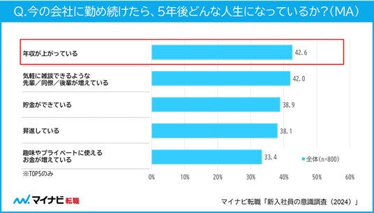 新入社員が今の会社で「5年後年収が上がっている」と思う割合は?マイナビ転職、「新入社員の意識調査(2024)」を発表