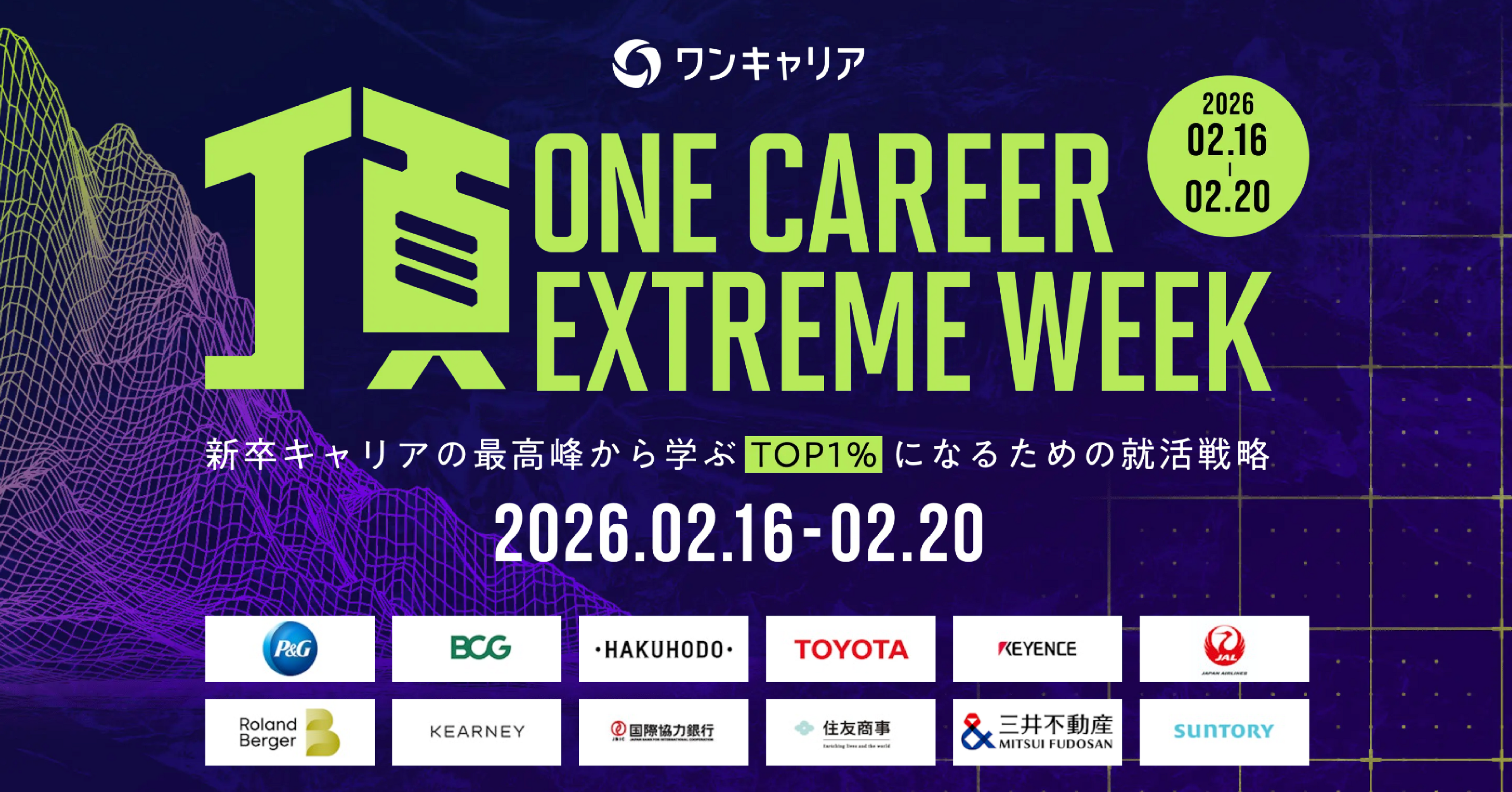 役社長 執行役員CEO:宮下 尚之、以下「ワンキャリア」)は、トップクラスのキャリアを目指す2028年卒の学生に向けたキャリア戦略を学ぶオンラインイベント「頂(いただき) -ONE CAREER EXTREME WEEK-」を、2026年2月16日(月)から20日(金)の5日間連続で開催します。