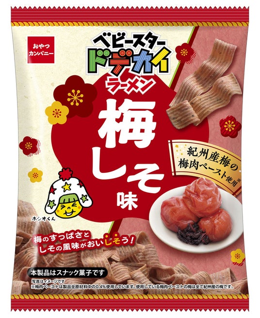 株式会社おやつカンパニー(所在地:三重県津市 代表取締役社長:横山正志)は、新春にぴったりな『ベビースタードデカイラーメン(梅しそ味)』を、2025年1月6日(月)より全国にて期間限定発売します。