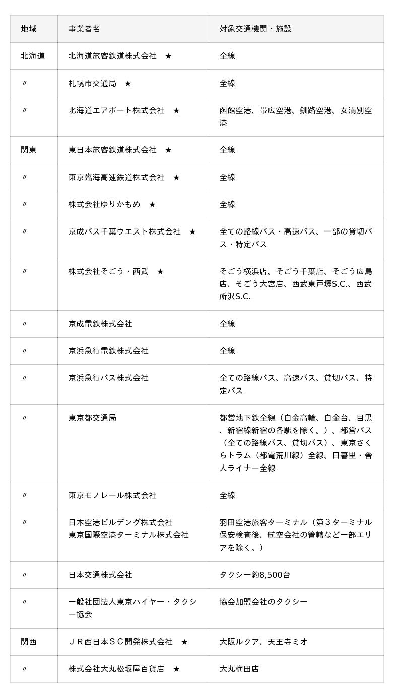 (★は今回新たに開始する事業者)