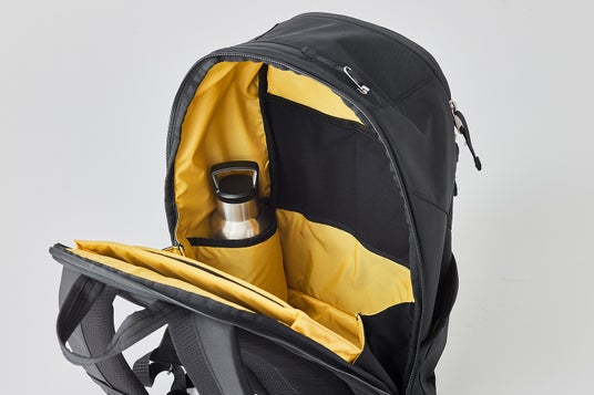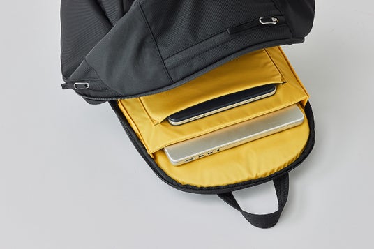 スタイリッシュなフォルムながら容量は26Lと十分な収納力を備えており、メインコンパートメントには15インチ対応のPCスリーブと液晶パネルのクッション材がついたタブレットスリーブの2層構造を採用。両サイドのスリーブポケットに加え、メインコンパ―トメント内にボトルスリーブを完備することでボトル収納時もフォルムを崩さず、ビジネスシーンにもスマートに対応します。また開口部はU字に大きく開く仕様で、フロント側についているポケットへの出しいれや荷物が多い際も取り出しやすい構造になっています。
