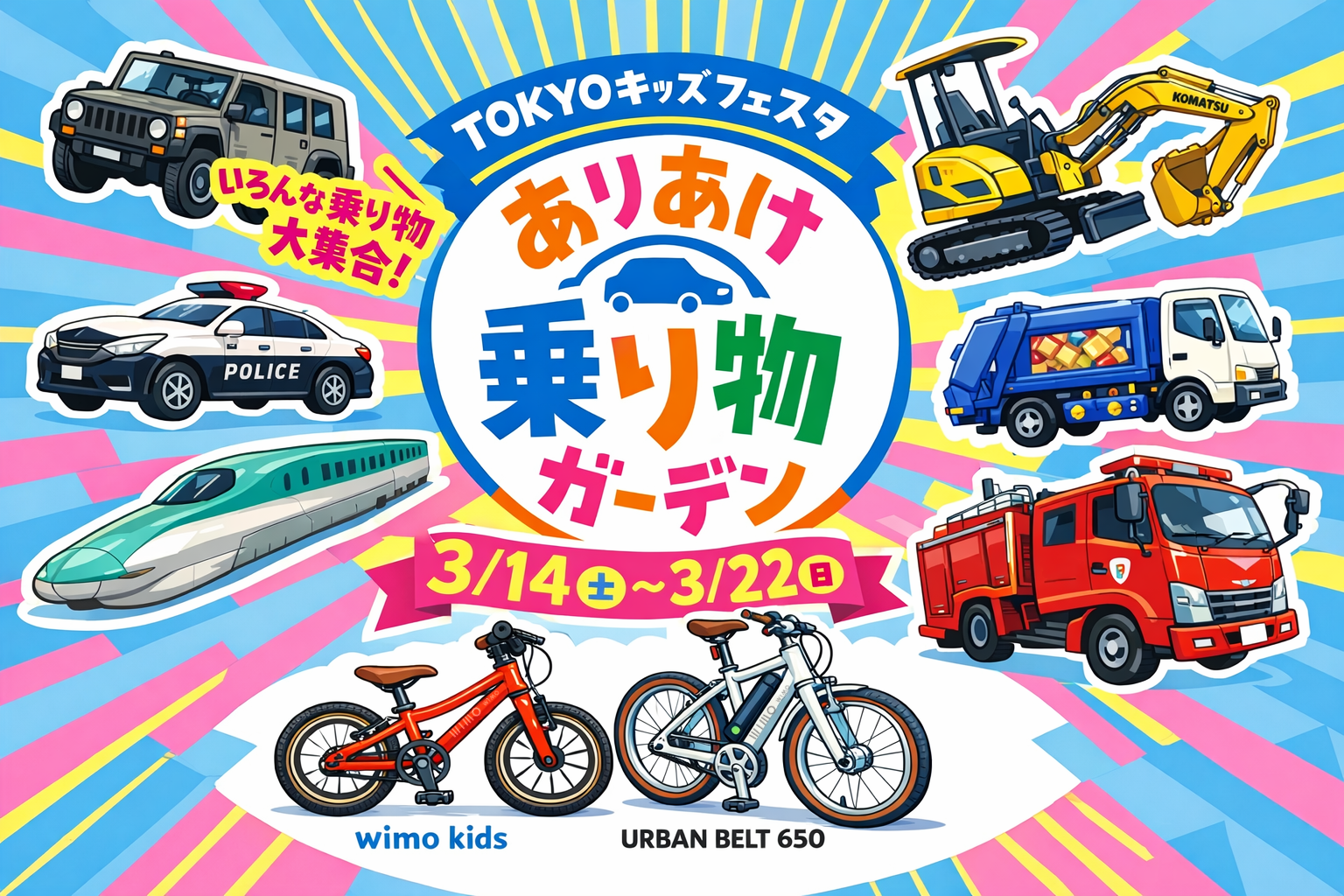 wimo株式会社(本社:東京都港区、代表取締役社長:洪佳莎)は、2026年3月14日(土)に住友不動産ショッピングシティ有明ガーデンで開催されるイベント「ありあけ乗り物ガーデン」に出展し、キッズバイクおよび電動アシスト自転車の試乗・展示を行います。
