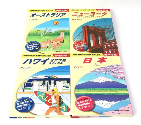 『地球の歩き方』が御朱印帳になって登場!デザインは<ハワイ、ニューヨーク、オーストラリア、日本>の4種類。御朱印集めだけでなく日記帳やスタンプ帳、スケッチブックとして使うのもお勧めです。