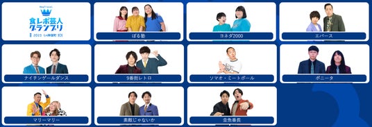 ぼる塾/ヨネダ2000/エバース/ナイチンゲールダンス/9番街レトロ/ソマオ・ミートボール/ボニータ/マリーマリー/素敵じゃないか/金魚番長