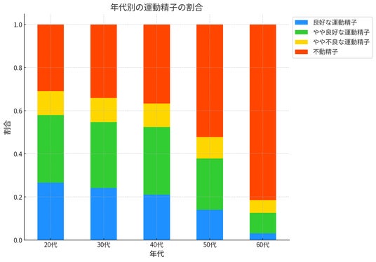 - 精子の質や運動率は、年齢とともに低下する傾向にある。