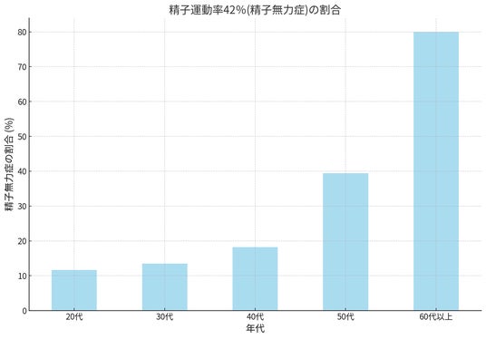 精子無力症の割合は、年齢とともに精子の運動率が下がることが分かります。