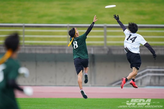 アルティメット(Ultimate)は、各7人からなる2チームが100m×37mのコートでディスクをパスしながら運び、エンドゾーン内でパスをキャッチすると得点(1点)となります。球技にはないディスクの飛行特性を利用すること、スピードや持久力を必要とすること、スピリット・オブ・ザ・ゲーム(Spirit of the game)という基本理念に基づいた自己審判制(セルフジャッジ)を採用していることから究極(Ultimate)という名前がつけられました。ユース世代各部門は5人制にて競技を行います。