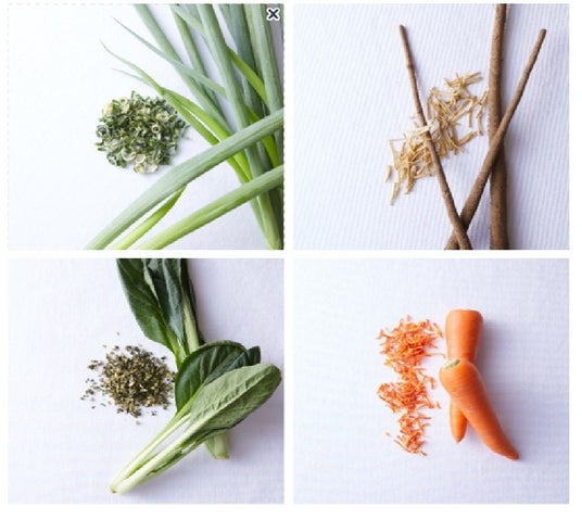 - 乾燥野菜(小松菜、ねぎ、人参、ごぼう)を使用し、食物繊維を手軽に摂取できるよう配慮。