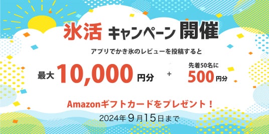 「氷活ログ」の公開を記念して夏の氷活投稿キャンペーンを開催します。5件の投稿で先着50名様に500円分のAmazonギフトカード、投稿数に応じて最大10,000円分のAmazonギフトカードをプレゼントするキャンペーンです。