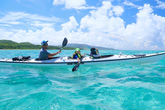 シーカヤックスノーケルツアー 小浜島から無人島まで手漕ぎのカヤックで海を渡る、ちょっとした海の冒険ツアーです。片道2kmを30~40分かけて渡り、途中サンゴ礁の綺麗なポイントでスノーケルも楽しめます。海を渡った達成感とサンゴ礁の海を探検した充実感、知的好奇心を持って海を渡り、サンゴ礁の世界を知る経験は、ご家族の絆と心の成長に繋がります。