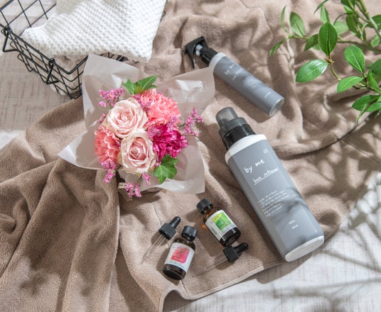 今回、販売するコラボレーション商品は、『by me』のベースソフナー(衣料用柔軟剤)とベースファブリックミスト(布製品に香りづけを行うスプレー)の「香りのないベース」と日比谷花壇がセレクトしたフローラル調の香りのエッセンス2種をセットにした“香りのスペシャルギフト”に、“そのまま飾れるブーケ”を組み合わせた、この期間にしか購入できない特別限定品です。