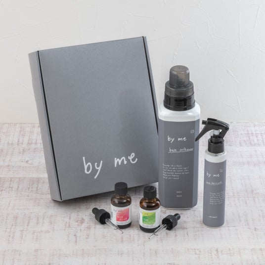 『by me』は、無香性のベース(柔軟剤・衣類ミスト)に香りのエッセンスをブレンドし、自分に合った暮らしの香りをカスタマイズする新習慣を提案しているライオンの新ブランドです。