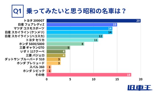・調査内容:Q1.乗ってみたいと思う昭和の名車は? Q2.昭和のクルマの魅力と聞いて思い浮かべるものは?※複数回答可