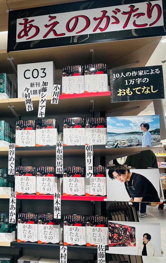 呼びかけ人である今村翔吾さん、小川哲さん、加藤シゲアキさんにくわえて、朝井リョウさん、麻布競馬場さん、荒木あかねさん、今村昌弘さん、佐藤究さん、蝉谷めぐ実さん、柚木麻子さんという、注目作家10人が集まった『あえのがたり』。アンソロジーとしては異例の売れ行きで、北陸を中心とした各書店で大きく展開されています。