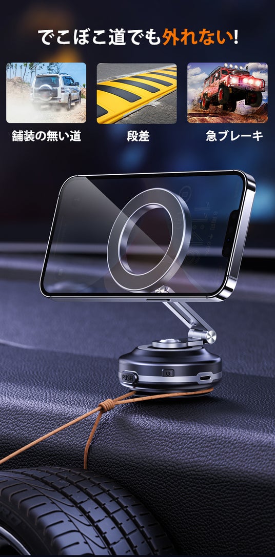 その吸着力は驚くほど高く、運転中のカーナビとしても非常に安定しており、でこぼこ道でも落ちにくいです。