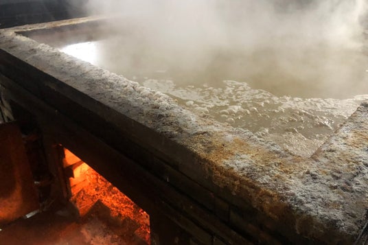 4日間の予備焚きをした後、塩の結晶になるまで「本焚き」で煮切る