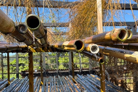 太陽と風の力を使う立体式塩田で塩を濃縮させ、かんすいを作る