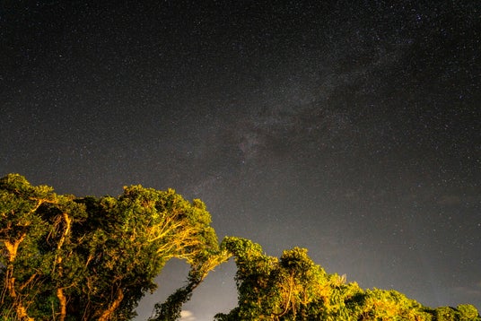 フィルター未使用街明かりの影響で星空が色カブリを起こしています。
