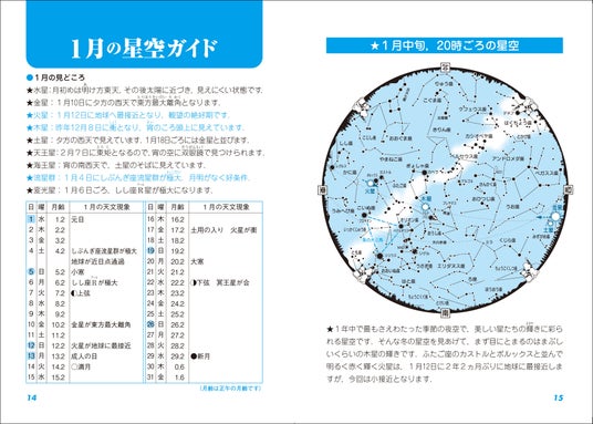 12ヵ月それぞれの月の星空の様子と、その月に起こる天文現象をわかりやすく紹介しました。