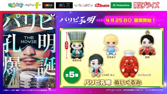 映画『パリピ孔明 THE MOVIE』のぬいぐるみがいよいよ登場! 諸葛孔明、月見英子、劉備、KABE太人、コックムックのぬいぐるみが4月25日(金)よりモーリーファンタジー・PALOにて展開開始