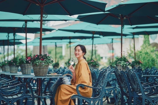 ずらりと並ぶパラソルの下お昼間から贅沢な1杯を