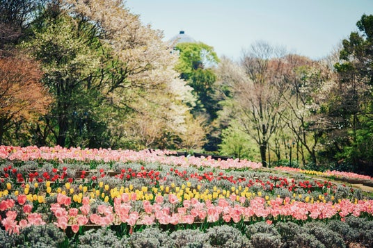 山桜(3月下旬~4月中旬)、チューリップ(3月下旬~4月下旬)