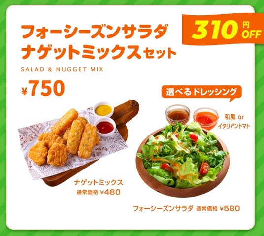 *ピザ1枚ご注文につき、1セットの販売となります。 *他のセット・クーポンとの併用はできません。