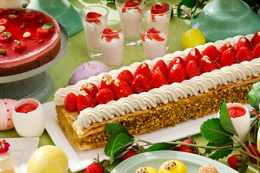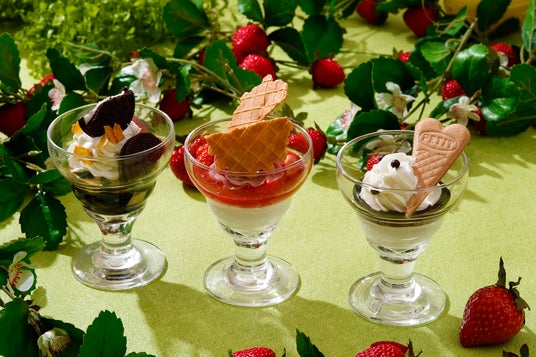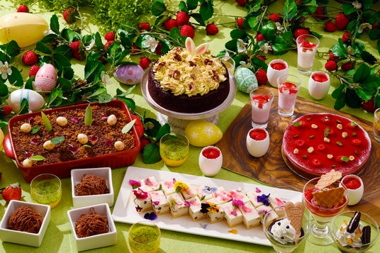 スイーツは、第一弾期間中は春の庭園をイメージしたいちごスイーツを取り揃えました。カスタマイズコーナーでは、しぼりたてモンブランやお好みに合わせてカスタマイズしていただけるシェフズスペシャルパフェもご用意。第二弾では、旬を迎えるメロンをふんだんに使用したスイーツをお楽しみいただけます。
