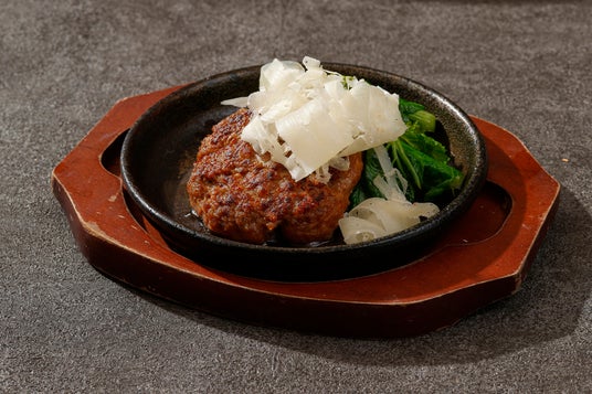 ジューシーで熱々の北海道産黒毛和牛ハンバーグ