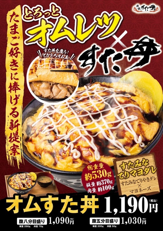 たまご好きに捧ぐ春の新提案!すた丼が隠れるほどのでかとろオム玉&すたみなてりマヨダレ!