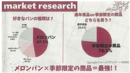 ほんのり桜風味の生地に、上品な甘さの抹茶クッキー生地を合わせこしあんを包み込んだ和テイストのメロンパン。みんなが大好きなメロンパンに季節感をプラスしたいという学生さんの想いを実現しました。
