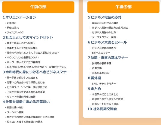 敬語やビジネス電話の受け方、名刺交換などのビジネスの必須スキルをレクチャーします。