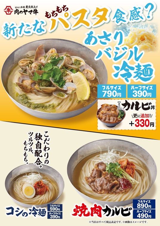 株式会社肉のヤマ牛(本社:東京都渋谷区、代表取締役社長:池ノ上 達也)が展開する、食の感動体験を追求し、切りたて・焼きたてにこだわる炭火仕上げ肉のヤマ牛は、2024年9月19日(水)から暑さ厳しいこの残暑の時期にさっぱりとお召し上がりいただける『あさりバジル冷麺』を期間限定で販売いたします。
