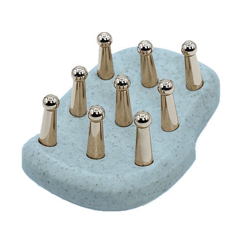 ステンレスの9つの突起が頭皮に深く入り込みマッサージ効果を高める筋膜リリースギア。